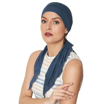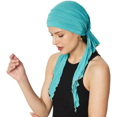 Mia caps are made from a lightweight, soft and naturally breathable double layer of Bamboo Viscose creating minimal seam exposure. With a pre-tied long tail design preventing the need to reach above the head. Elastic closure at the back provides a soft but secure fit.